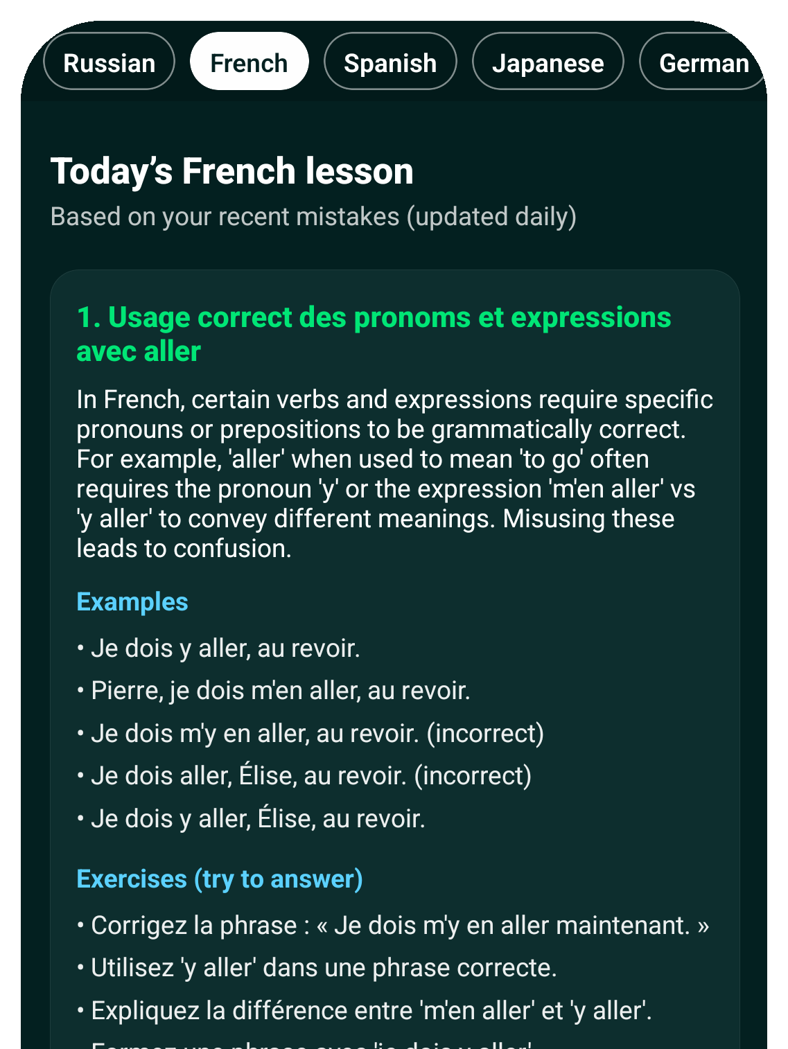 Babblo is for language learners who have reached an intermediate level or higher but are struggling to progress further. It is not designed for beginners!